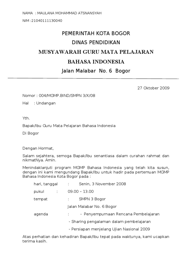 Penulisan ini pun tidak harus menggunakan bahasa indonesia sebagai bahasa resmi, namun bisa menggunakan bahasa daerah. Tetapi meskipun demikian, penulis harus tetap mengetahui etika yang baik ketika menuliskan surat. Sobat ibi pasti tidak asing lagi bukan dengan surat dalam bahasa inggris surat formal yaitu surat yang dikirim kepada sebuah instansi, sedangkan surat non formal yaitu surat yang dikirimkan kepada teman atau sahabat dan. Contoh surat undangan resmi mengahdiri acara dibuat dan ditujukan bisa kepada individu atau sebuah kelompok dalam perusahaan sehingga memang biasanya ketua atau kepala sekolah yang di undang tidak bisa hadir disinilah akan di ganti dengan perwakilanya. Pengertian dan contoh kata serapan dalam bahasa indonesia.